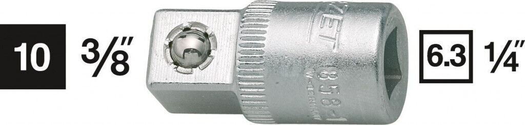 Vnitřní čtyřhran Pohon 6,3 = 1/4″Vnější čtyřhran pohon 10 = 3/8″Povrch: chromovánoDIN 3123, ISO 3316Vyrobeno v Německu