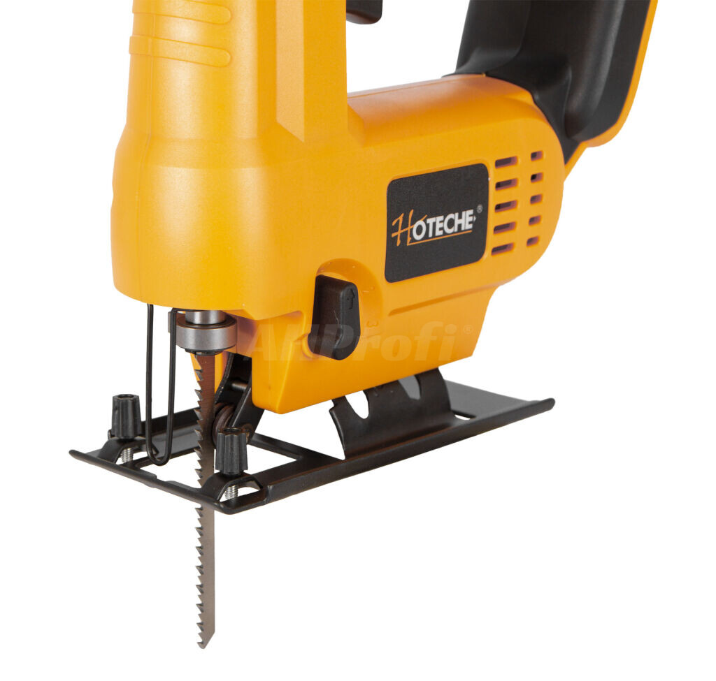 AKUmulátorová přímočará pila (přímočarka) od značky Hoteche napájena akumulátorem 20 V.