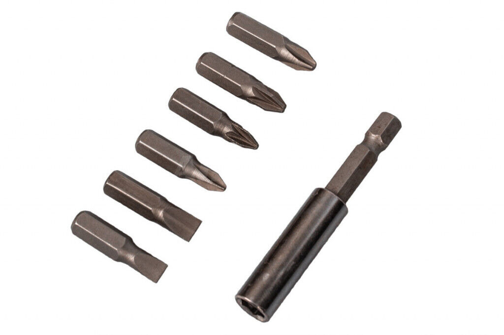 - Praktický plastový kufr se sadou vrtáků a bitů.