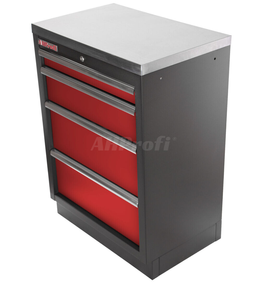 Celokovová PROFI dílenská skříňka se 4-mi zásuvkami 680x458x910 mm. Skříň je vhodná do servisů, dílen i garáží. Hmotnost: 49,2 kg.