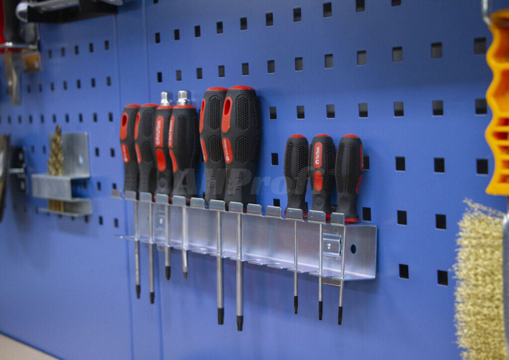 Děrovaná závěsná deska PROFI. Může být použita samostatně, případně do setu se stojícími nebo závěsnými dílenskými skříňkami. V našem sortimentu naleznete velké množství háčků, díky kterým se snáze udrží nářadí přehledně uklizené na správném místě. Prodává se mimo jiné v rámci kvalitní PROFI 10ks sestavy dílenského nábytku TGS1300 nebo menších sestavách. Deska je vhodná do profesionálních servisů, dílen, ale také do garáží pro uskladnění širokého sortimentu zboží i ručního nářadí, na které se pak nepráší a snáze se udrží přehledně uklizené na správném místě.