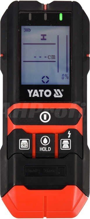 Zjistitelné objekty dřevo, kov, vodiče pod napětím. Měření vlhkosti. Detekční rozsah 38 - 120 mm, LED display.