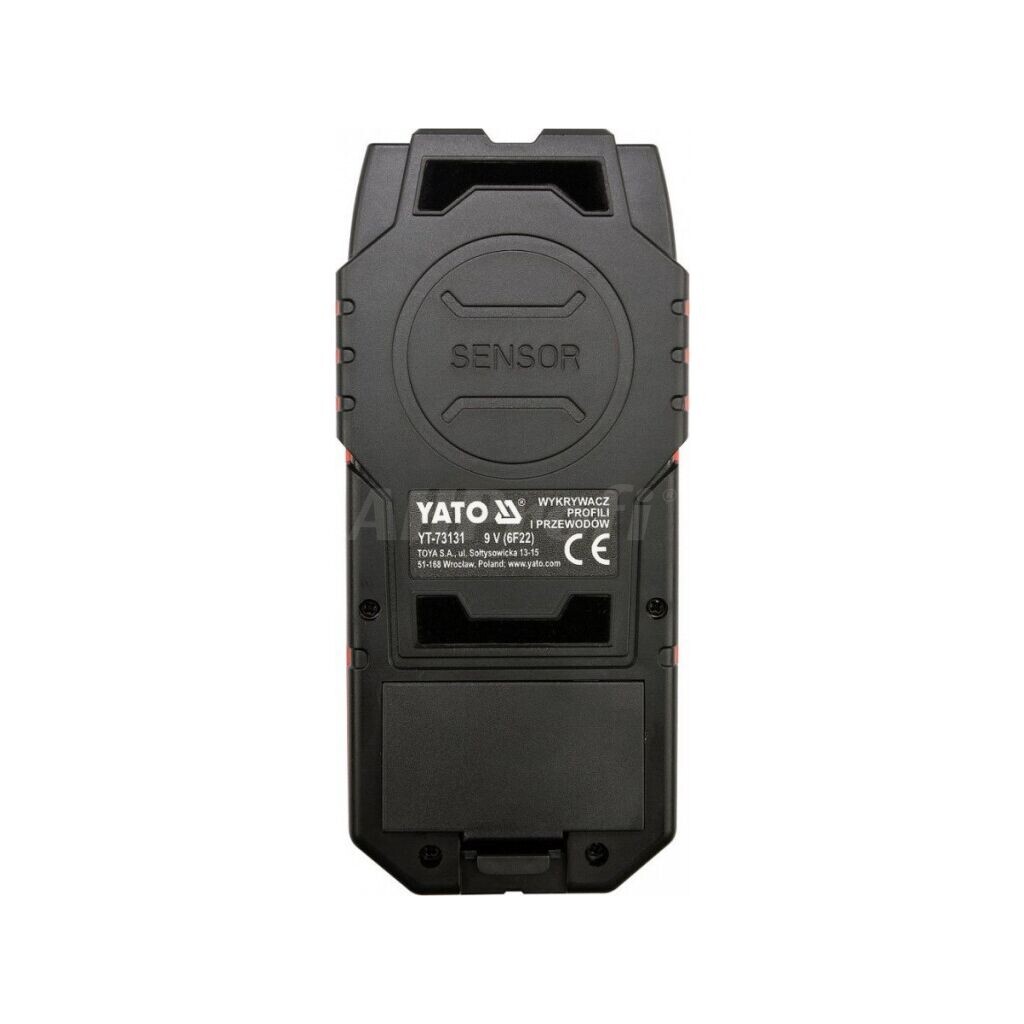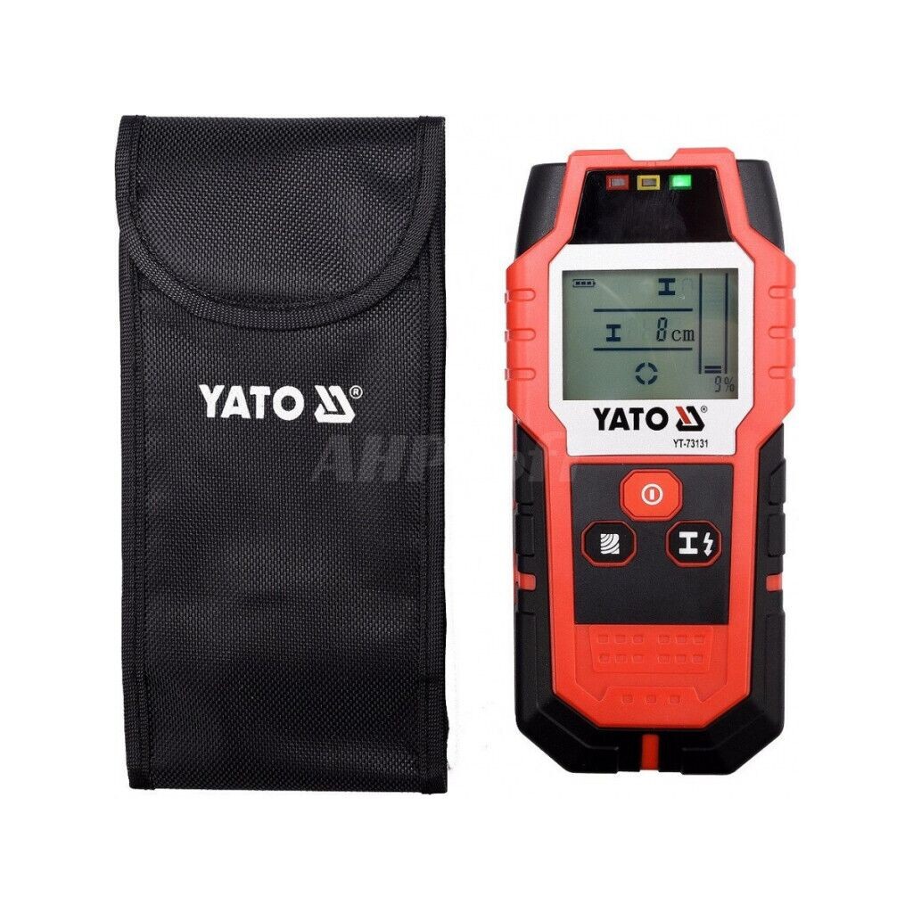 Profesionální digitální detektor Yato-73131 s velkým, čitelným a LED podsvíceným displejem, vhodný na vyhledávání drátů, vodičů, datových kabelů, železných i neželezných profilů.