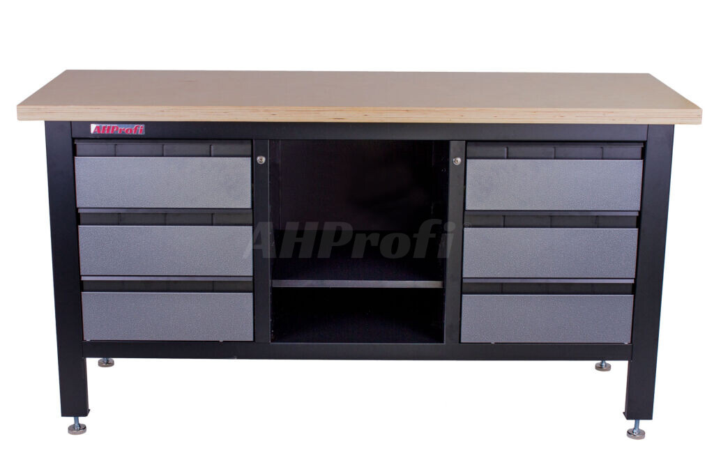 Profesionální kovový ponk vhodný pro nejnáročnější použití. Nosnost pracovního stolu je 300 kg. Je vybavený dřevěnou pracovní deskou o rozměrech 1690 x 600 mm, 6 šuplíky a policí.