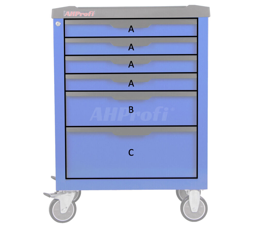 Vozík má 6 šuplíků, do kterých můžete umístit výplně nebo nářadí.