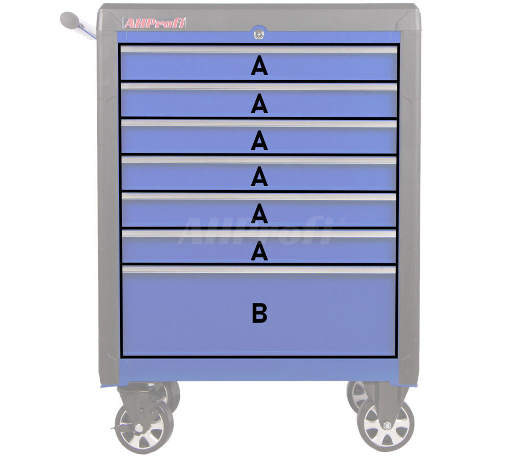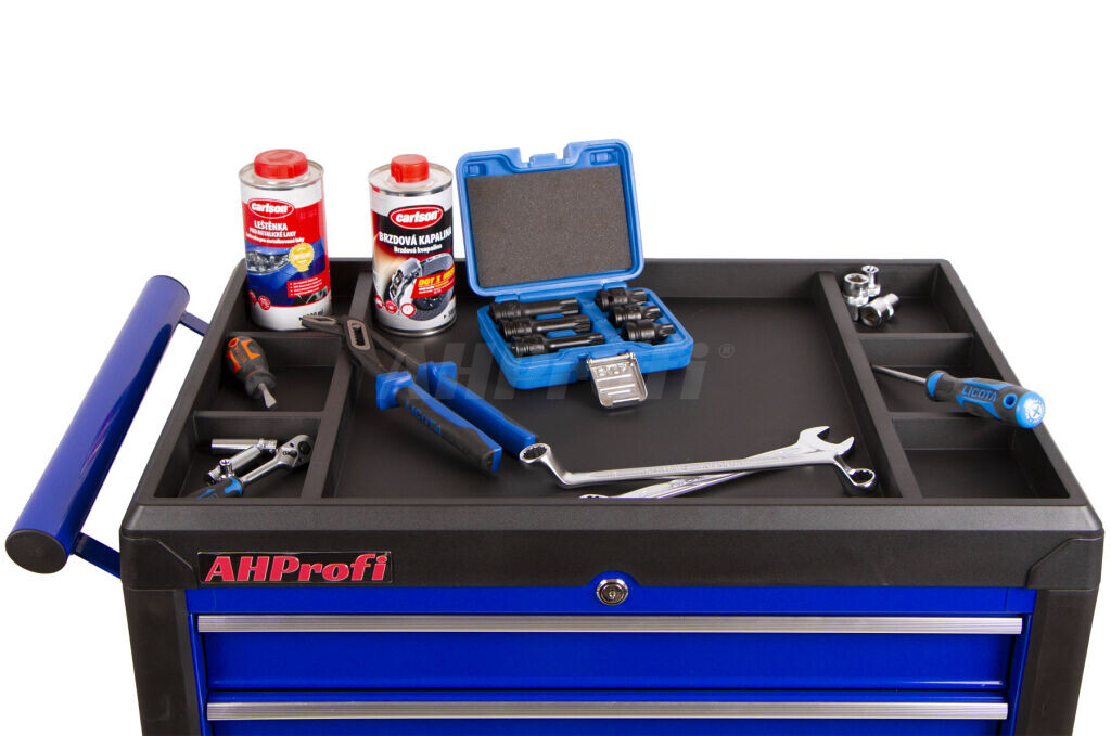 Vozík má 7 zásuvek, do kterých se vejde spoustu různého nářadí nebo výplní s nářadím.