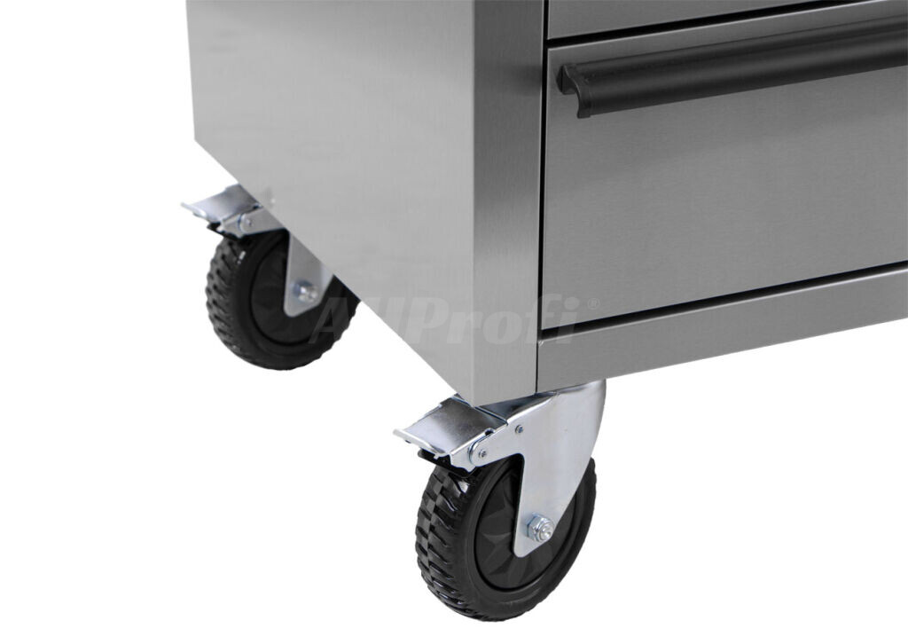 Dílenský vozík AHProfi je celokovový robustní model navržený z vysoce kvalitní nerezové oceli (typ 430) s anti-otiskovou úpravou.