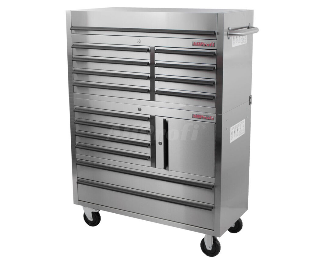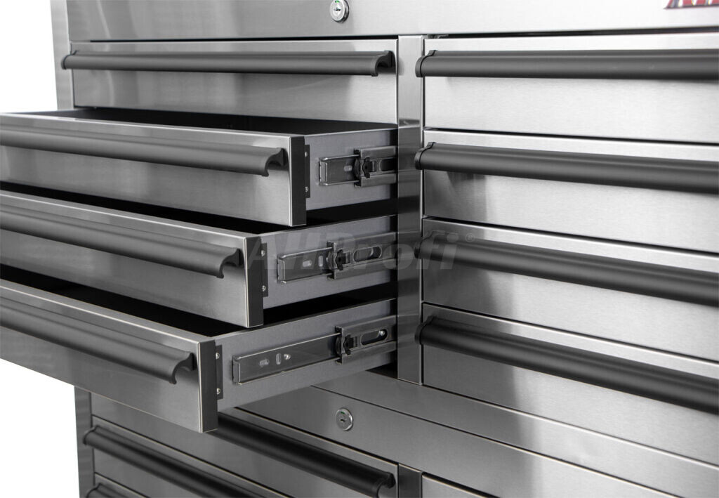 - Celkem 14 zásuvek a 1 skříňka poskytují dostatek prostoru pro organizaci nářadí.