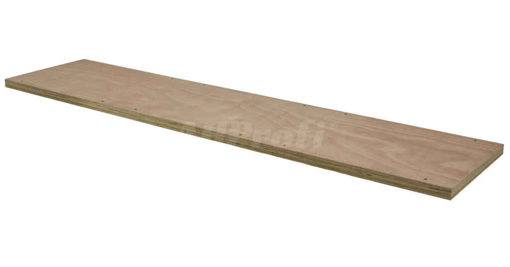 Dřevěná pracovní deska do sestavy dílenského nábytku PROFI, hloubka 46,3 cm. Celkové rozměry 2040 x 463 x 38 mm, 10 vrstvá překližka se 2 vrstvami laku.