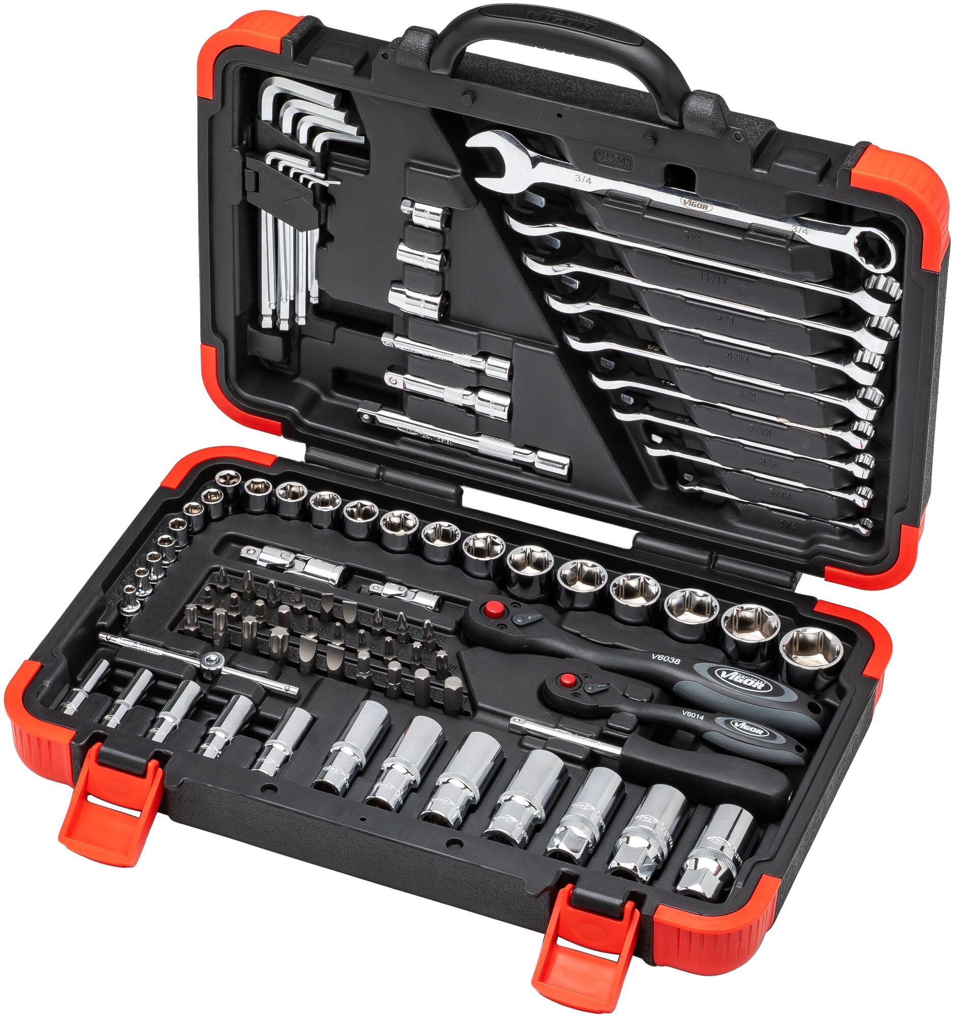 Gola sada palcová, 1/4" a 3/8", 92 ks nářadí, Vigor - V2470N