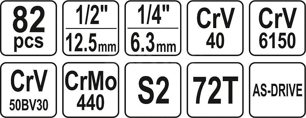 Gola sada s klíči 1/4" a 1/2", 82 ks - YT-12691
