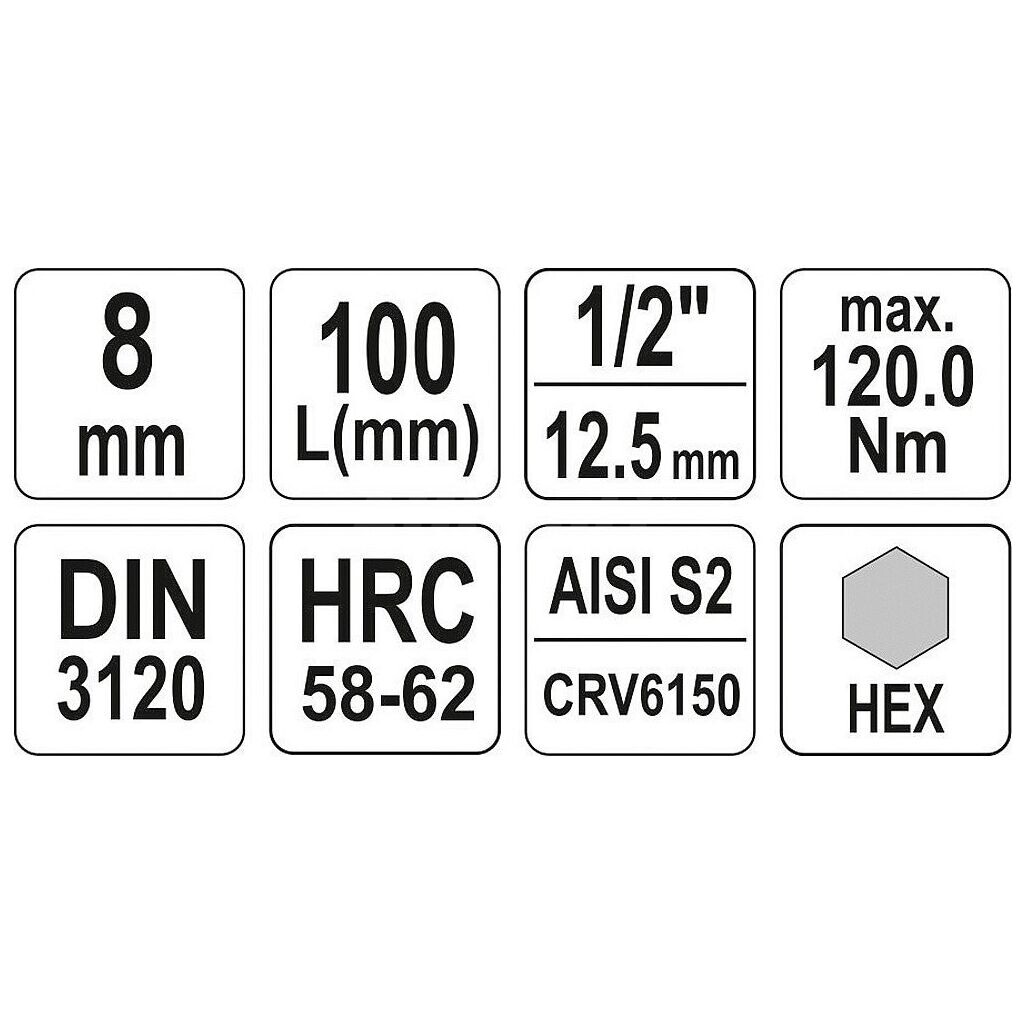 Hlavice s bitem HEX 1/2" H8 Yato - YT-04394