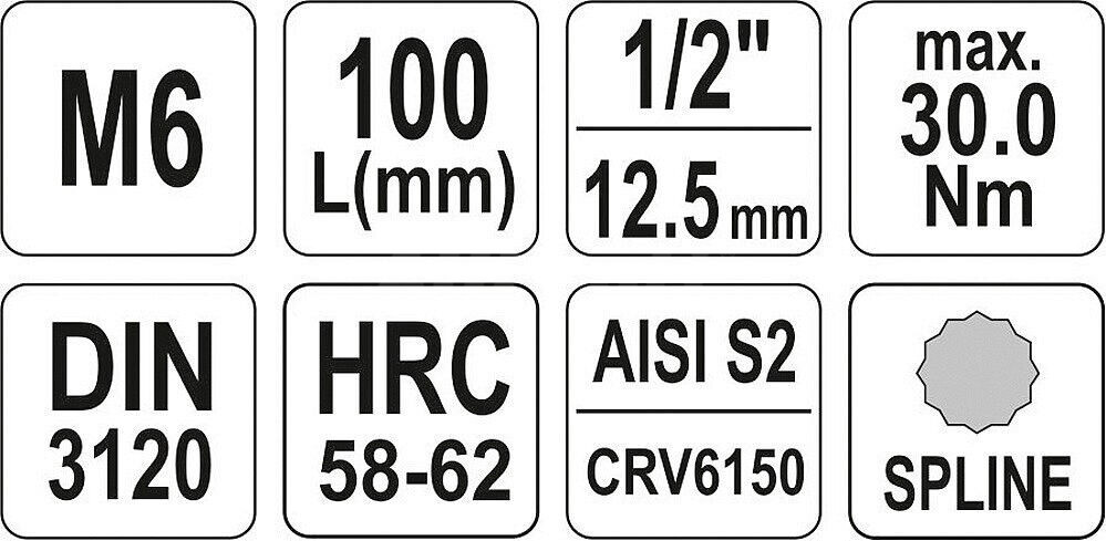 Profesionální šestihranný bit Vícezubý (SPLINE) pro 1/2" ráčnu, neboli nástrčná hlavice s bitem tisícihran (dvanáctihran / XZN) M6.