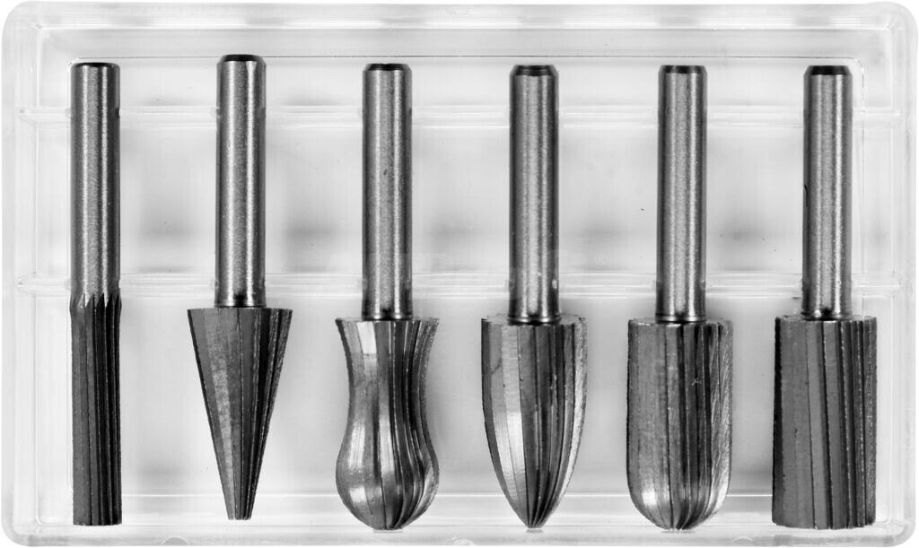 Sada 6 ks rašplí určených pro obrábění oceli a hliníku.