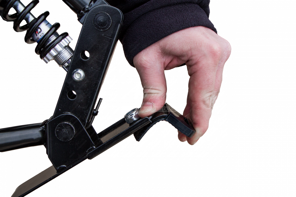 Nejprve složte rám motokáry. Na jeden díl rámu se upíná sedadlo, na druhý kolo. Při skládání musí být oba rámy plochami nahoru. V prvním kroku nasunete rychloupínače na sedadlový rám. Následně rám na kolo vsunete do rámu na sedadlo (délku si zvolte takovou, aby byla motokára dostatečně dlouhá pro jezdce), rychloupínače umístíte ke konci sedadlového rámu, utáhnete šroubky šroubovákem a uzavřete upínače.