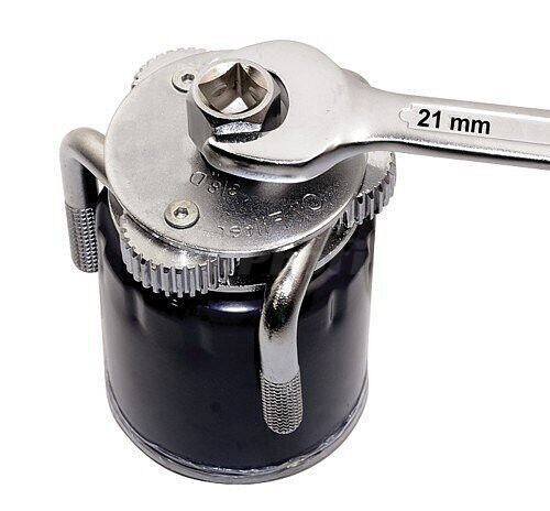 Univerzální klíč pro montáž a demontáž olejových filtrů. Pro filtry o průměru 65 - 125 mm. Vhodný i pro auta se zúženou pracovní oblastí. Celokovová konstrukce, povrchová úprava, zdrsnění (zuby) na upínacích ramenech pro pevný záběr při uvolňování nebo utahování olejového filtru. Klíč se nasadí na olejový filtr a pomocí ráčny (1/2") nebo stranového či nástrčného klíče (21mm) se olejový filtr utáhne či povolí.