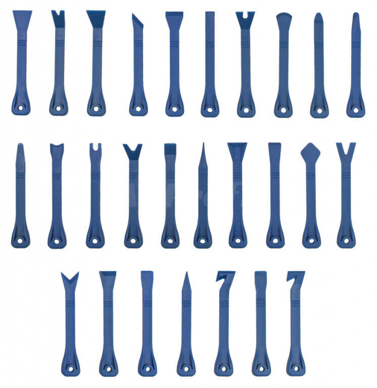Sada 27 ks profesionálních nástrojů se speciálním profilem na demontáž vnitřních a vnějších příchytek plastových a čalouněných částí automobilů.