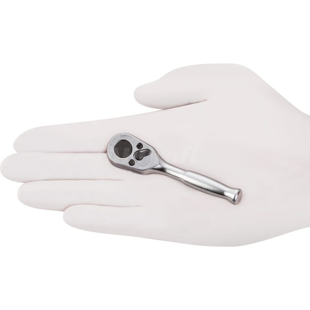 Kvalitní celokovová přepínací ráčna na bity od německého výrobce HAZET, štíhlý tvar, zahnutá o 15°, 20 zubů, krátké provedení - jen 89 mm.