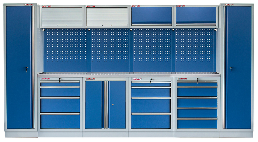 Sestava nábytku v sobě skrývá dostatečné množství úložného prostoru pro vaše nářadí, autotechniku i dílenské vybavení. V kombinaci s bytelnou pracovní deskou získáte multifunkční stěnu, se kterou vám půjde práce od ruky ve všech směrech.