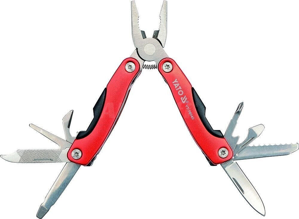 Skládací víceúčelový nůž, 9 komponentů z nerezové oceli, kov, eloxovaný rám, taštička na suchý zip.Rozměry: 6,8 x 3,1 cm (složené), barva: červená.