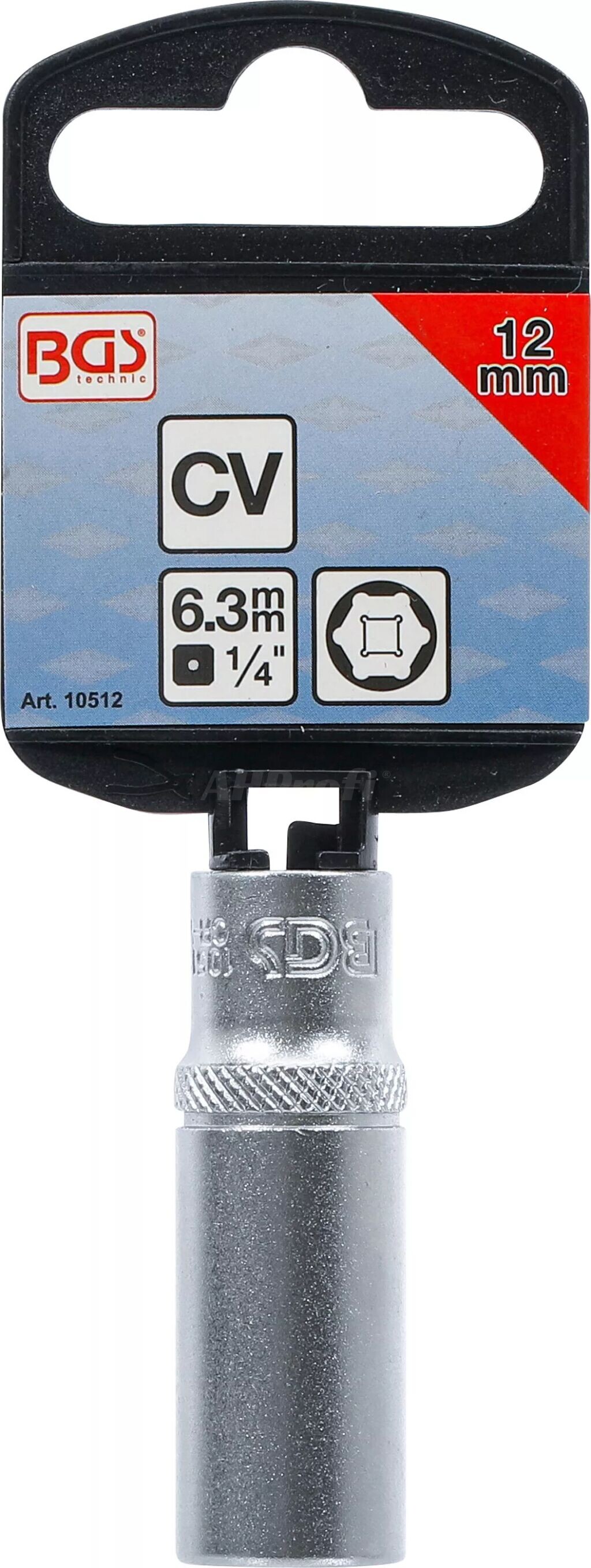 Nástrčná hlavice šestihranná prodloužená | 6,3 mm (1/4") | 12 mm | BGS