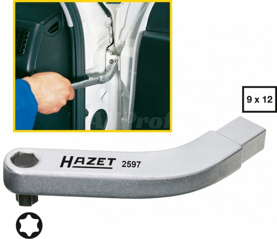 Nástrčný klíč pro dveřní závěsy, zahnutý držák bitů 2597 Hazet