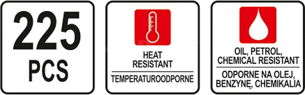 - O kroužek gumová těsnící sada 225ks,3x1 -...