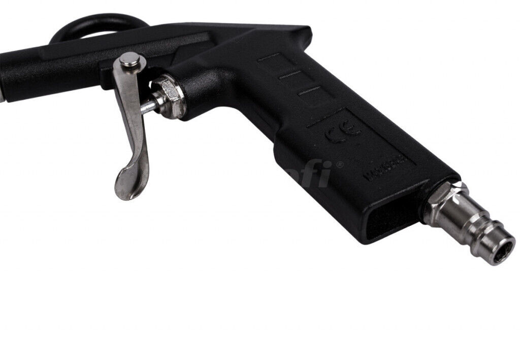 Klasická krátká ofukovací pistole s připojením vzduchu rychlospojkou 1/4" vyrobená značkou Hoteche. Využití je v dílnách či garážích pro očištění nečistot, prachu nebo strojů a to i v těžko přístupných místech. Využití je ale univerzální.