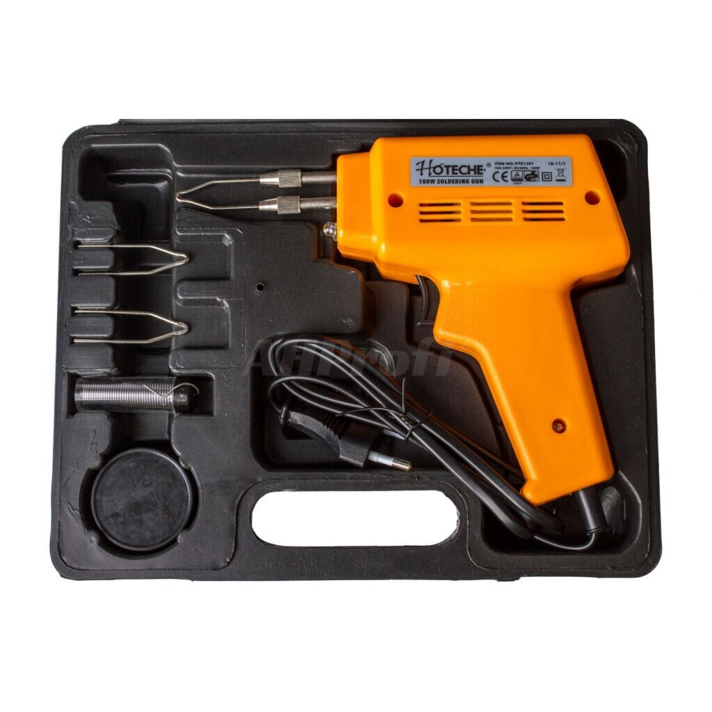 Pájka Hoteche 100 W v kufru pro všestranné použití v elektrotechnice i dílně. Klasické provedení se žárovkou na osvětlení pracovní plochy.