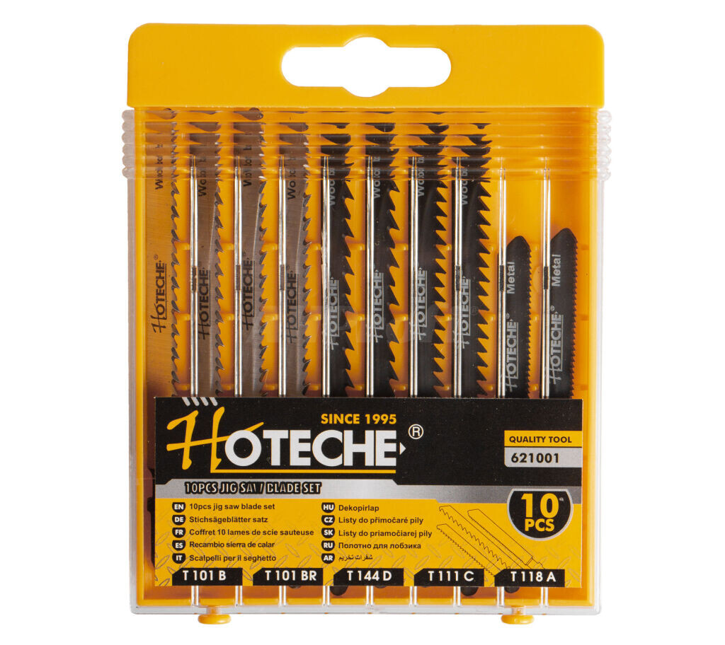 Sada obsahuje 10 plátků do přímočaré pily (šukalky). Využití na řezání dřeva, PVC nebo kovu a hliníku.