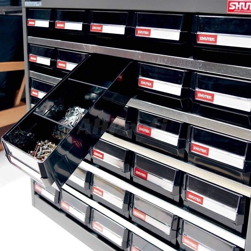 Vybavte si dílnu praktickým vybavením od značky Shuter jako například plastový úložný box, organizér na šroubky, kovové organizéry na dílenský materiál, boxy a kufry na nářadí, pracovní stůl, mobilní nástrojový organizér, vozík pro uložení závěsných pořadačů a další vybavení.