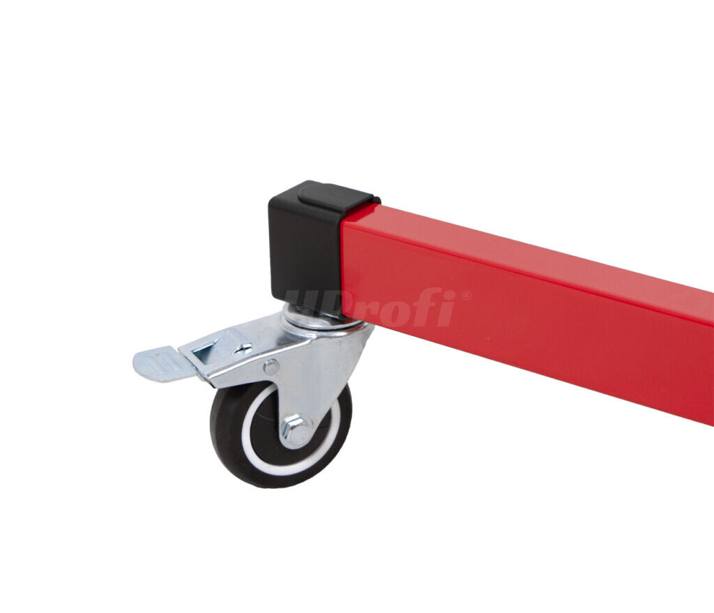 Montážní stolek na kolečkách, výškově nastavitelný 775 - 1200 cm (7 úrovní po 7 cm). Oddělitelná pojízdná horní plocha o rozměru 670 x 460 mm. Magnetické přihrádky pro kovové příslušenství.