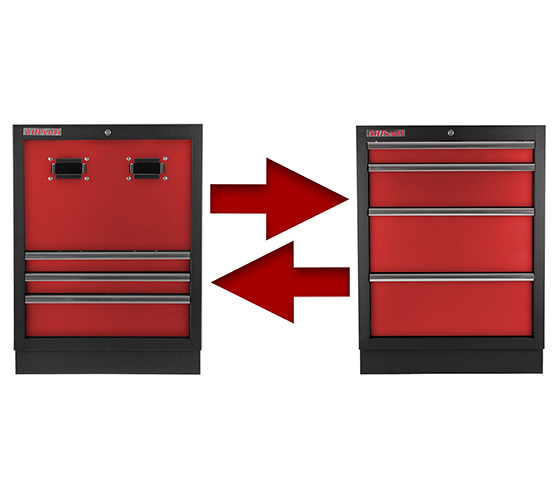Dílenský nábytek PROFI RED je plně modulární. Každá skříňka je navržena s ohledem na maximální flexibilitu. Jednotlivé komponenty zaměníte a umístíte podle vašich potřeb. Bez problému tak přidáte další skříňky na jakoukoliv pozici nebo sestavu můžete rozšířit o regály, ponk, dílenské vozíky s nářadím i prázdné nebo multifunkční skříňky.