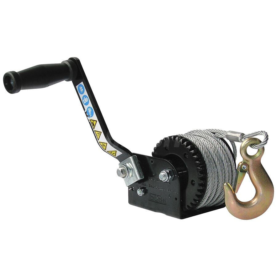 Ruční lanový naviják, určený k přitahování břemen (→ maximální zatížení v tahu: 360 kg).