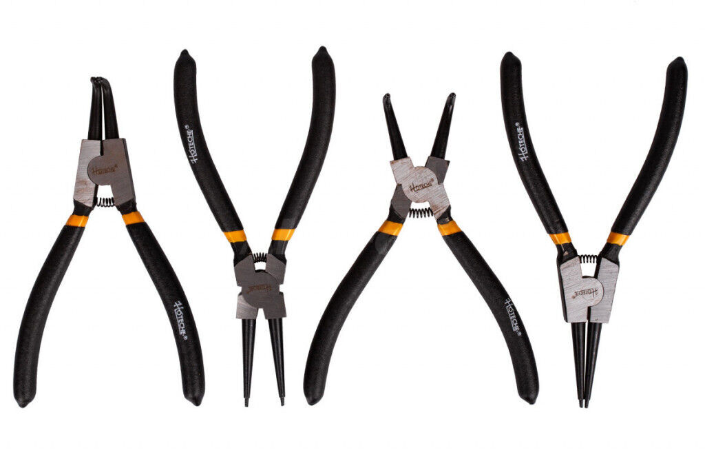 Kleště na pojistné kroužky v sadě 4 kusů pro montáž i demontáž pojistných kroužků jsou v této sadě v kompletu: