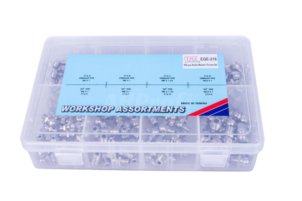 Profesionální sada 150 ks maznic, rovné i zahnuté 90 stupňů v plastovém boxu.