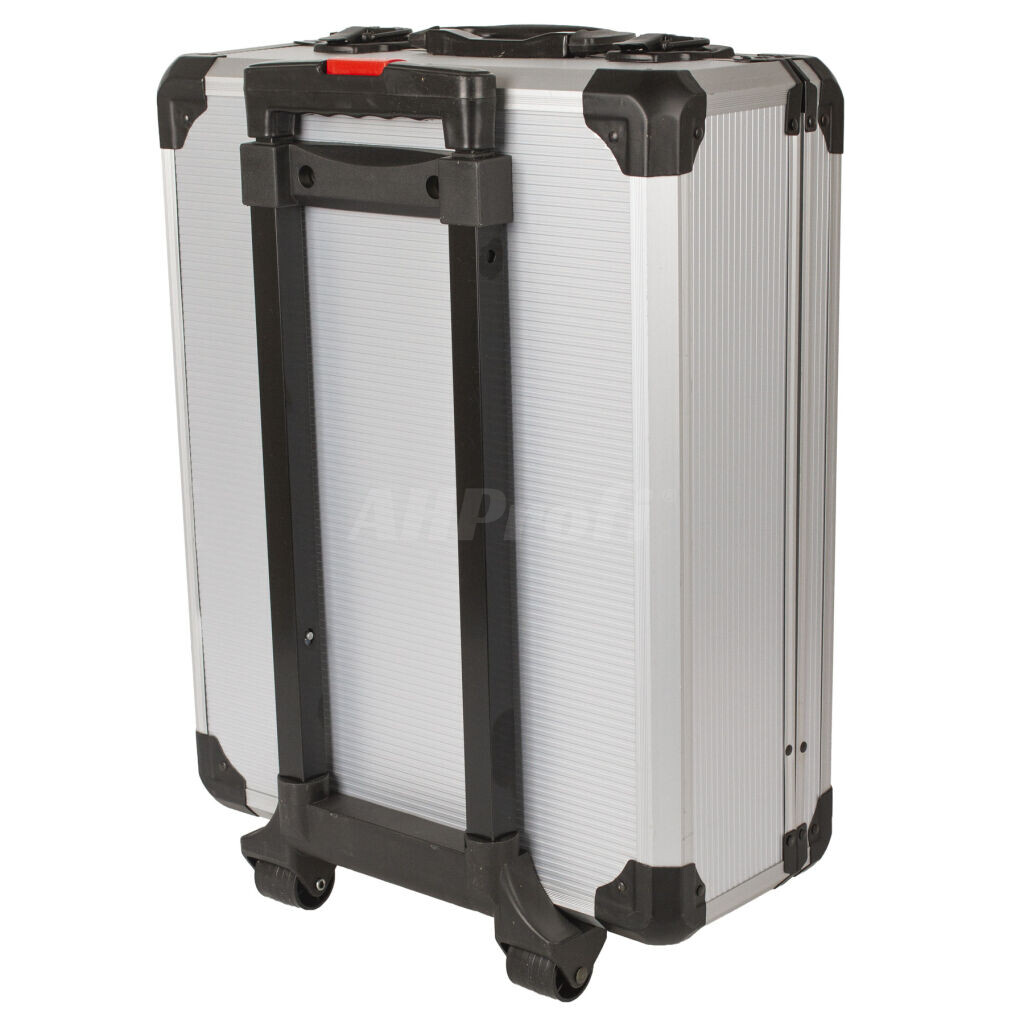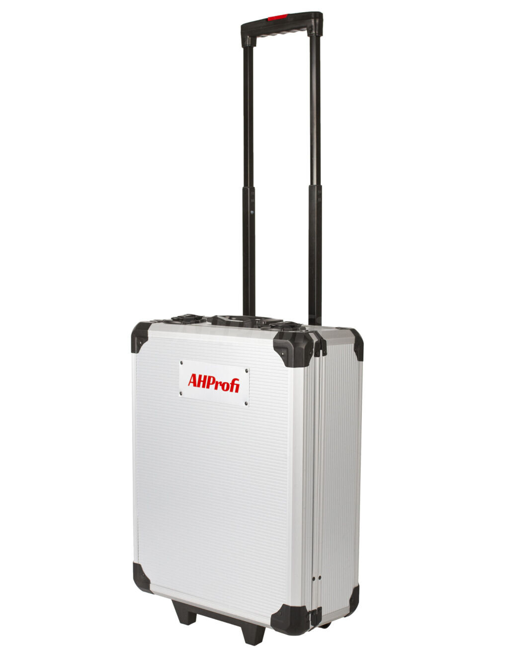 - Kufřík je vybaven teleskopickým madlem a kolečky, díky kterým je manipulace se sadou velice snadná.
