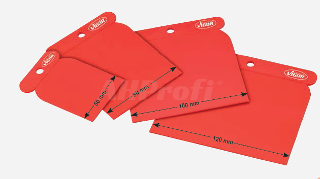 Sada plastových japonských stěrek od značky VIGOR, slouží mimo jiné k nanášení a hlazení povrchů.