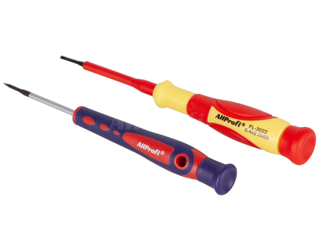 | 4 ks | VDE šroubováky: 2× plochý: SL2, SL2.5 2× křížový: PH00, PH0 |