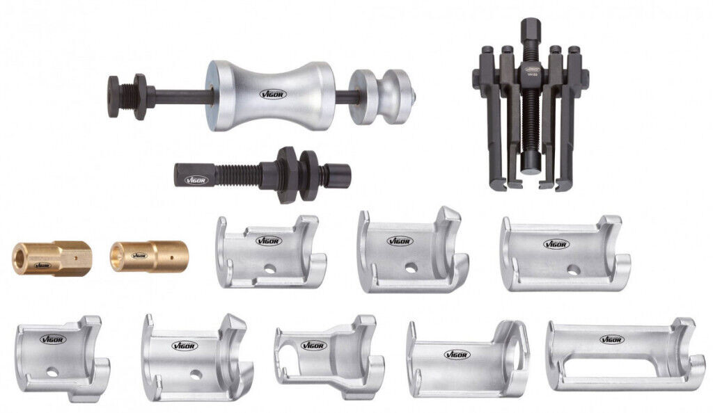 Profesionální sada stahováků ramének stěračů od německé značky VIGOR, 14 kusů v plastovém kufříku.