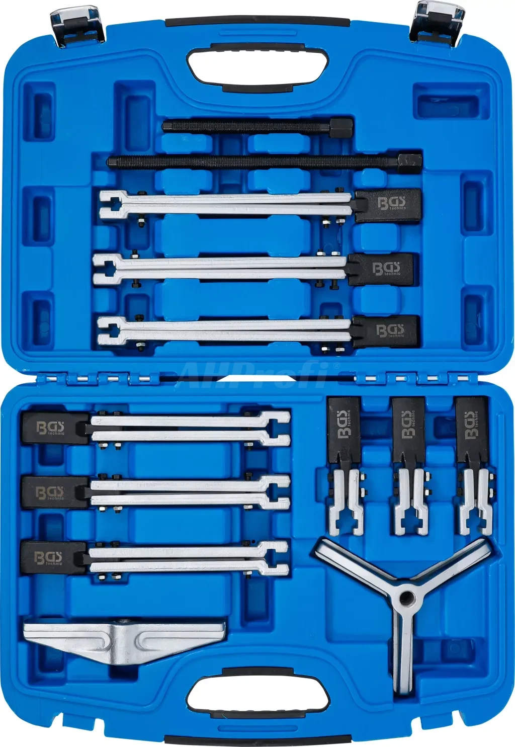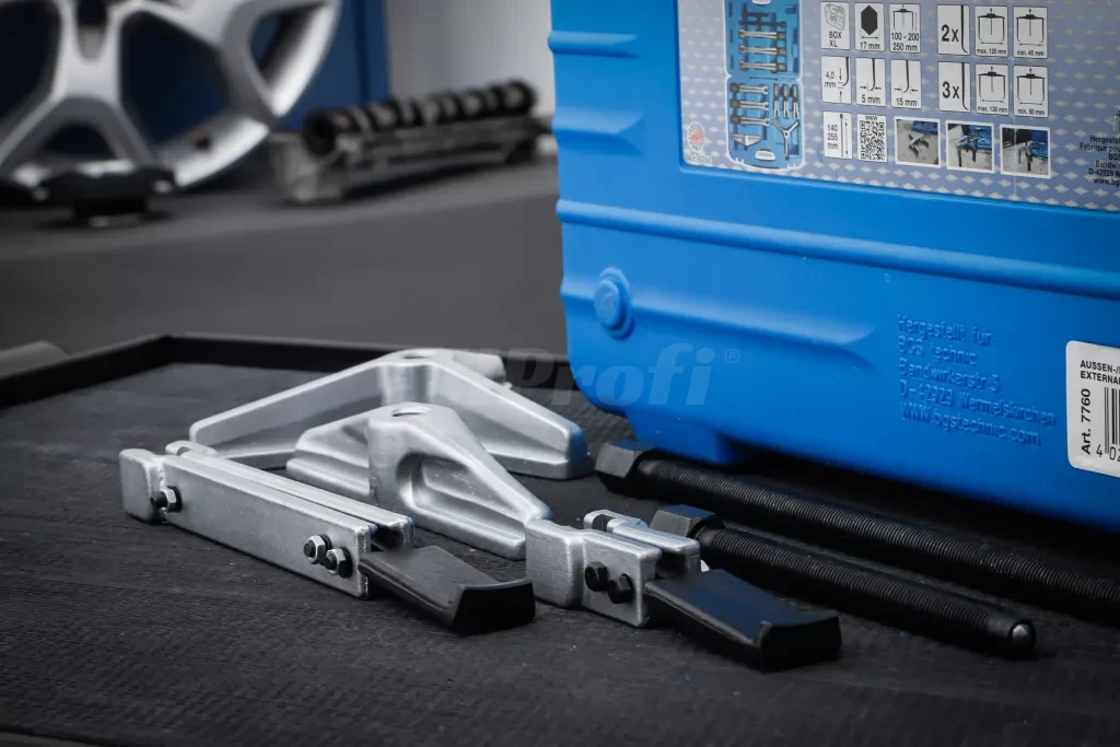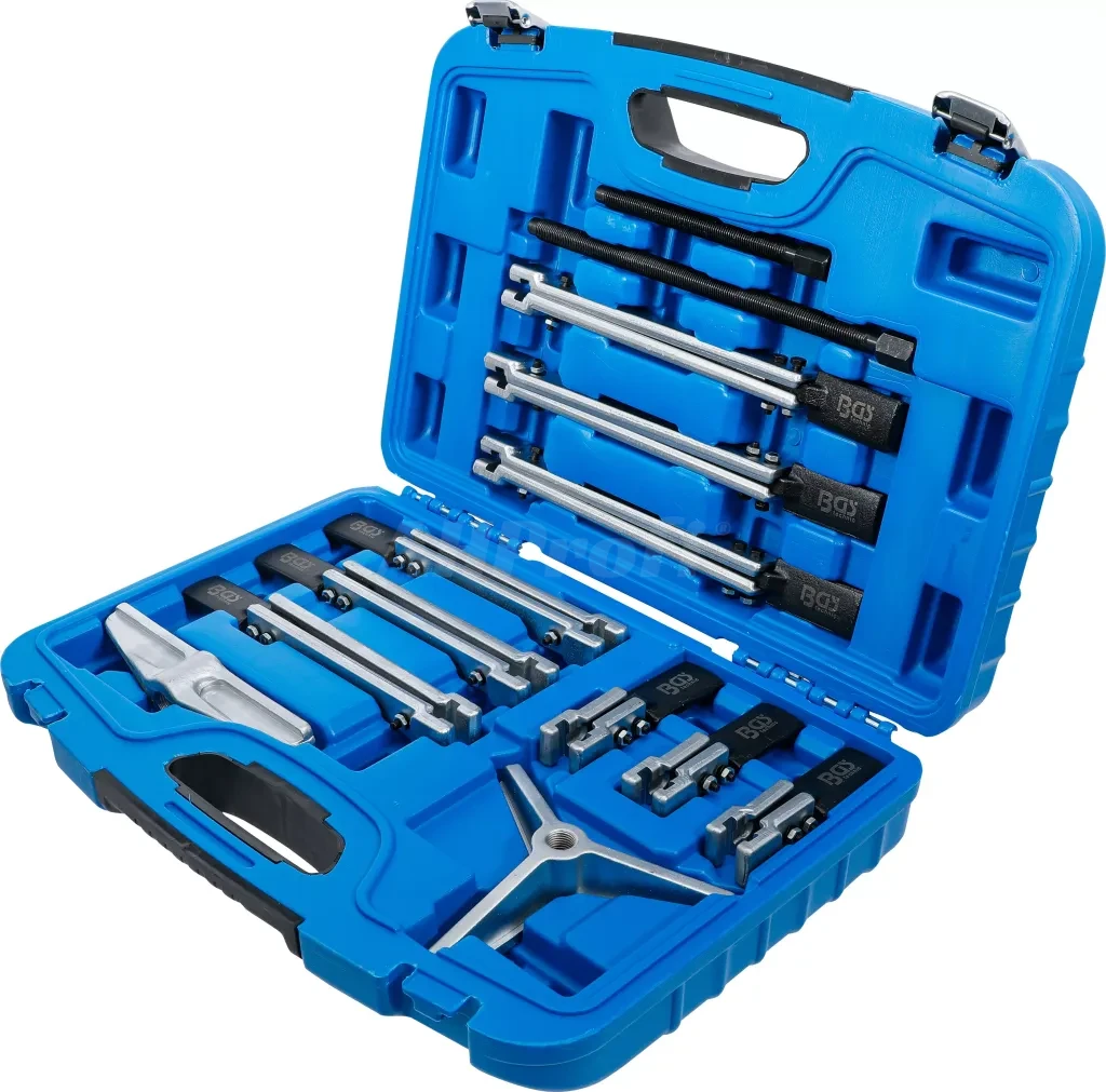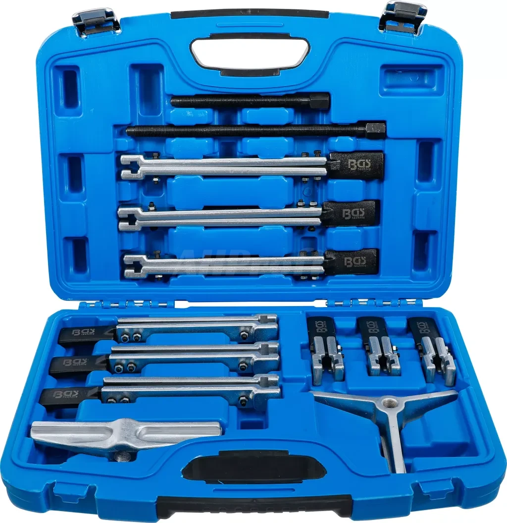 Univerzální sada stahováků BGS technic určená pro demontáž ložisek, ozubených kol, řemenic nebo nábojů v automobilovém i průmyslovém prostředí.
