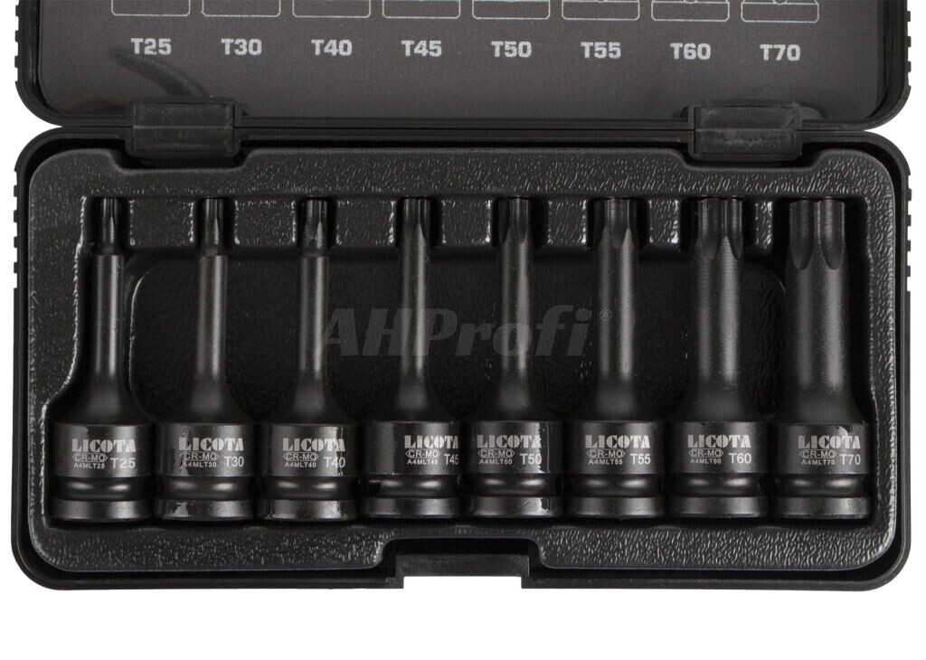 Sada vnějších nástrčných klíčů TORX 1/2" je ideální pro práci s rázovými utahováky díky své konstrukci a rozmanitým velikostem T25-T70.