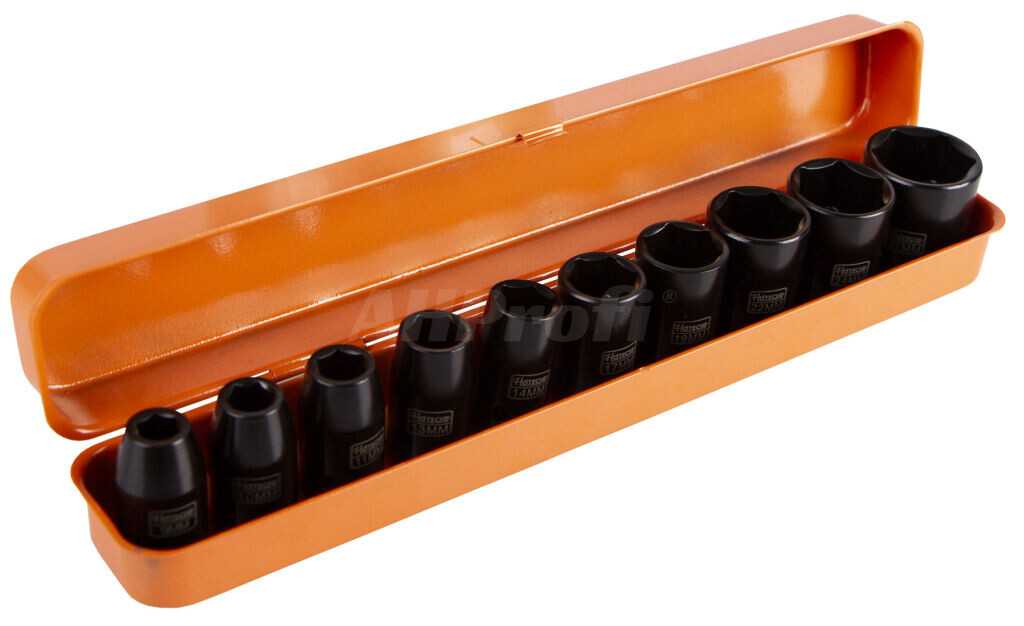 Čtyřhran 1/2", 10 ks. velikosti 9, 10, 11, 13, 14, 17, 19, 22, 24 s 27 mm.
