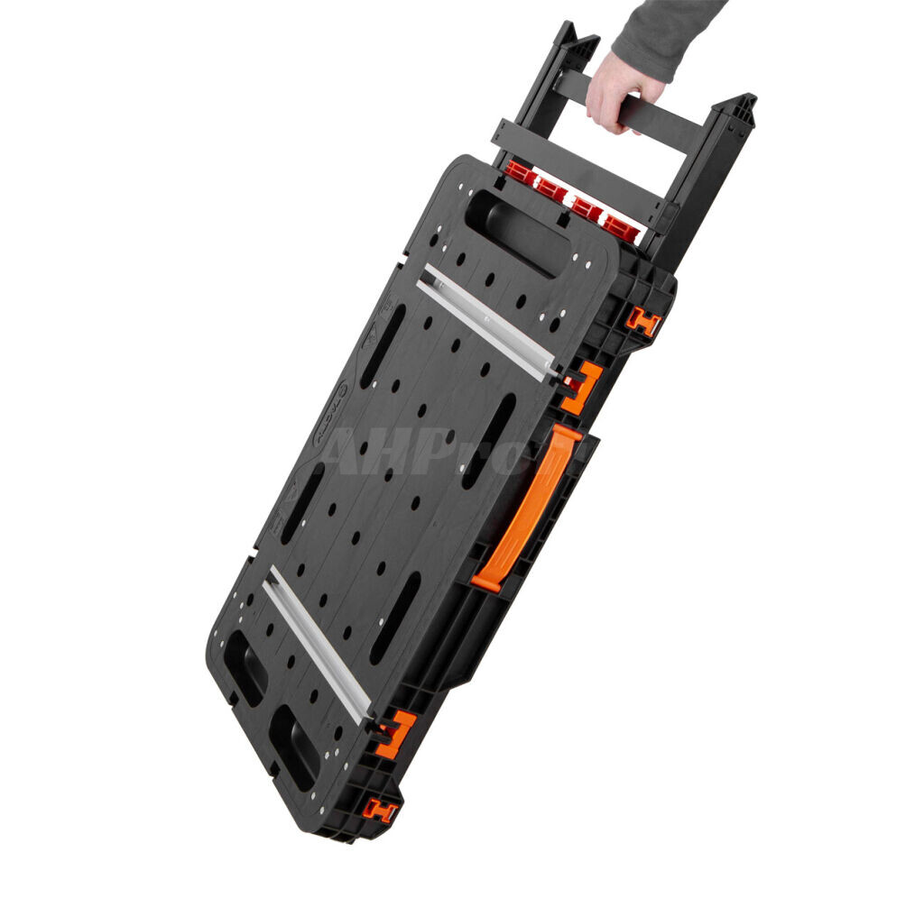 Skládací pracovní stůl TACTIX pro náročné pracovní úkony a snadnou manipulaci. S nosností až 350 kg a praktickými rozměry 864 x 544 x 800 mm je vhodný do dílen i pro práci v terénu.