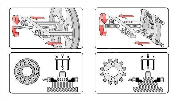 - Stahovák dvouramenný s přípavkem, šířka ramen 35-150mm, max. rozevření přípravku 43mm, přípravek na stahování ložisek, řemenic a podobných dílů.