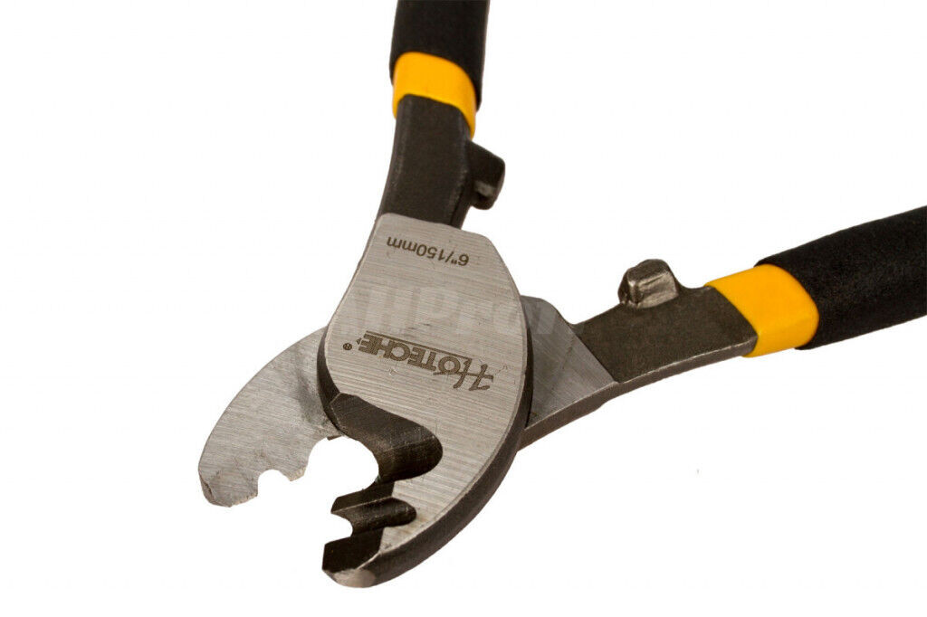 Kabelové štípací kleště o délce 165 mm. 2 drážky o průměru 3,5 a 7,5 mm. Vhodné ke stříhaní hliníkových a měděných drátů. Hmotnost: 200 g.