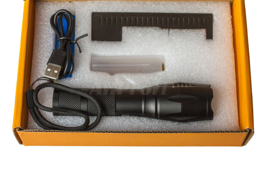 Kapesní svítilna s 5 funkcemi, obsah balení je také nabíječka baterie přes USB.