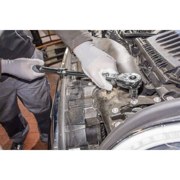 Profesionální teleskopická ráčna 1/2" určená pro přesné utahování a povolování spojů v autoservisech, dílnách i průmyslové údržbě.