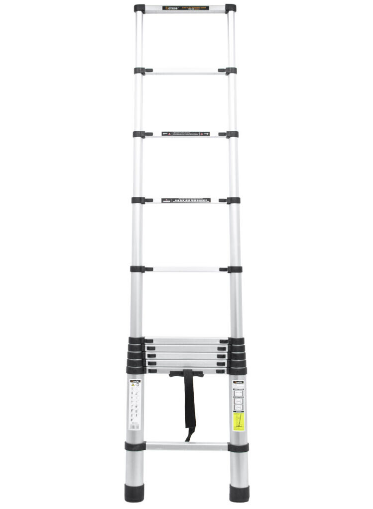 Hliníkový teleskopický žebřík o délce 3,2 m pro práce v interiéru i exteriéru a širokou škálu úkolů, jako je malování, čištění oken nebo montážní práce.