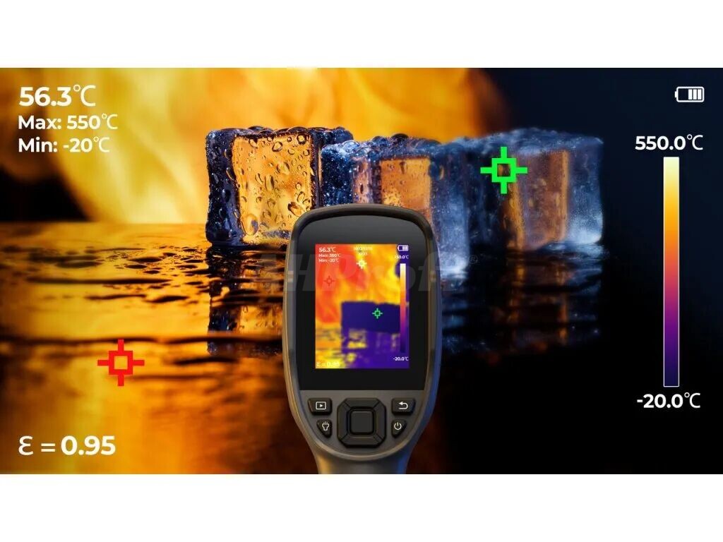 Termokamera TC005 je ruční profesionální termokamera, se širokým rozsahem měření teplot od -20°C do 550°C. Na jedno nabití vydrží až 12 hodin nepřetržitého provozu. S infrakamerou TOPDON TC005 s vysokým rozlišením 256 x 192 pixelů se můžete rozloučit s rozmazanými snímky.